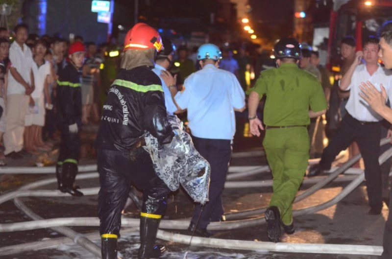 Ngay khi nhận được tin báo, lực lượng PCCC Quận 1 lập tức lên đường. “Người dân dập lửa không được mới báo. Lúc chúng tôi đến ngọn lửa đã bùng lên dữ dội, gần như đã bén hết cả tầng 2. Tôi và đồng đội định triển khai đội hình chữa cháy nhưng nghe nói còn có bé gái hai tuổi trên lầu nên phải tìm cách cứu người trước. Anh Hạnh (Trung úy Phan Công Hạnh) xịt nước, tấn công trực diện mở đường giúp tôi vào. Ngọn lửa bốc cao, hơi nóng hừng hực, cả căn phòng như biến thành biển lửa. Nhưng đã không còn kịp nữa. Đó là lần đầu tiên tôi nhìn thấy thi thể chết vì cháy. Tôi dùng chăn quấn đứa trẻ lại mang xuống. ”