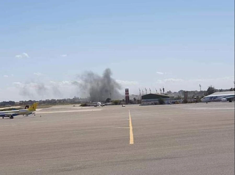 Sân bay Mitiga hứng không kích từ lực lượng LNA. Ảnh: TWITTER