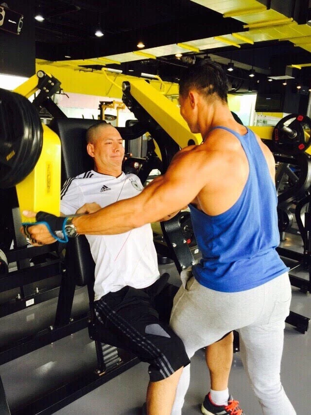 Phạm Hy hướng dẫn một học viên làm quen với thể hình