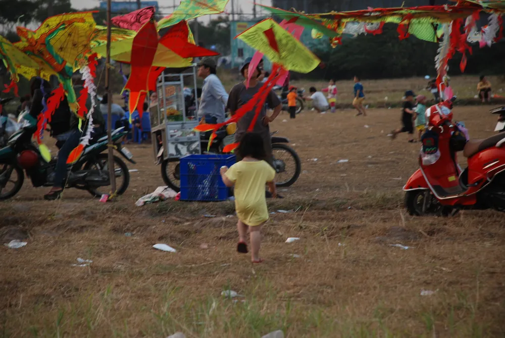 “Thấy cảnh tượng bé trai bị diều cuốn lên tôi cũng kinh hãi lắm, nhưng đã hứa với con là nếu ngoan mẹ sẽ cho đi thả diều nên vẫn cho cháu đi. Nhìn thấy con chạy tung tăng trên đồng ruộng với con diều mình cũng hiểu đây vẫn là nơi vui chơi mơ ước của con. Thôi thì mình ráng trông nom quan sát con kỹ hơn xíu nữa” – chị Thu đang thả diều cùng đứa con gái 6 tuổi cho biết.