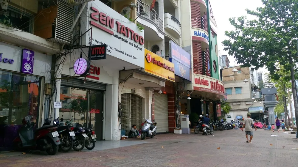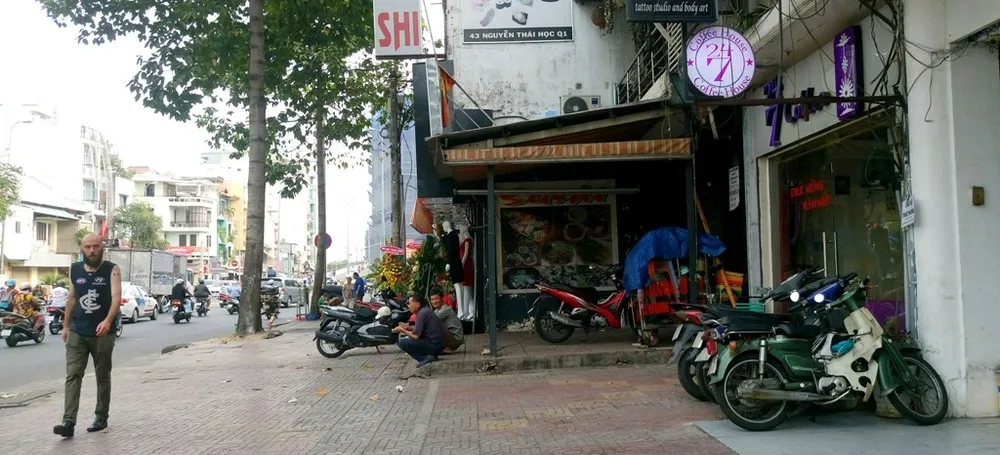 Vỉa hè đường Nguyễn Thái Học trước nhà hàng Biển Dương chiều 3-3.