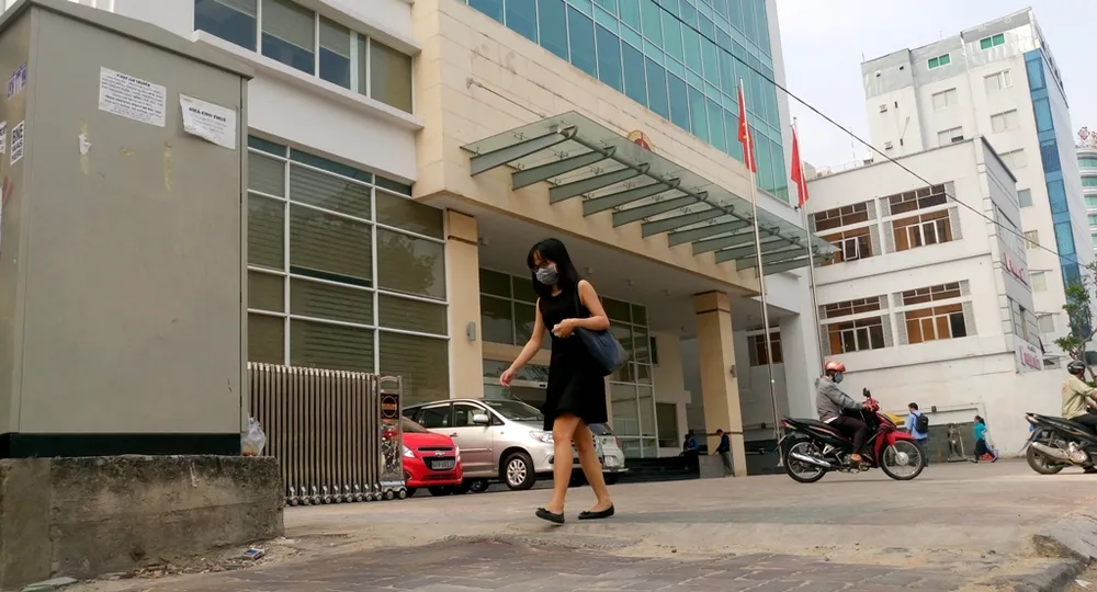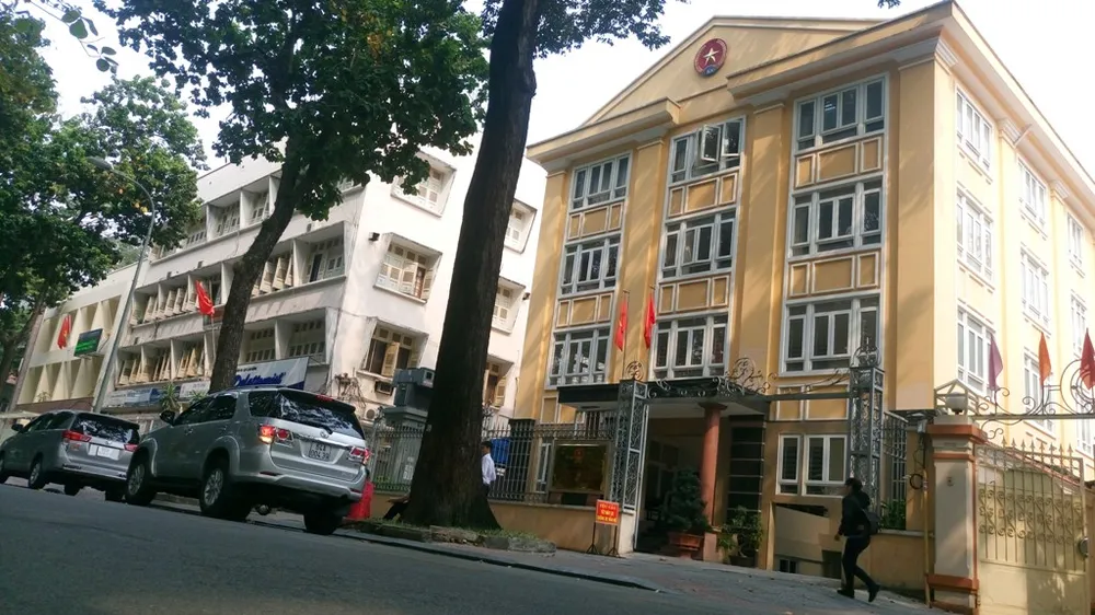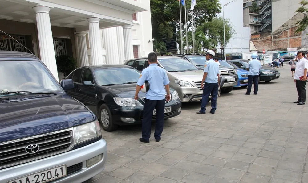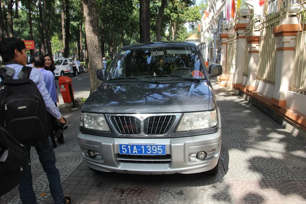 Xe biển xanh đậu trước Viện Kiểm Sát nhân dân Cấp cao tại TP.HCM trên đường Hàn Thuyên chiều 27-2 bị lập biên bản.
