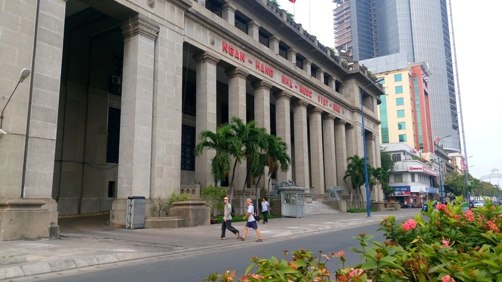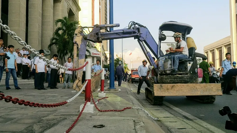 Đoàn kiểm tra do Phó Chủ tịch Đoàn Ngọc Hải cũng cho phá dỡ hàng rào chiếm vỉa hè trước trụ sở Ngân hàng Nhà nước Việt Nam ở TP.HCM, chiều 27-2.