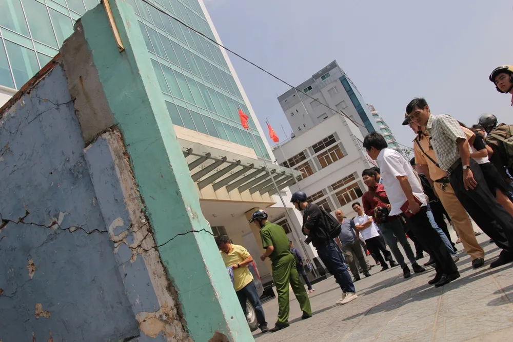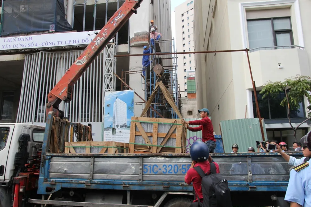 Đến nay, trước tòa nhà này vẫn còn vật liệu xây dựng, thậm chí các ô tô còn đậu xếp hàng dài trên đoạn đường này.