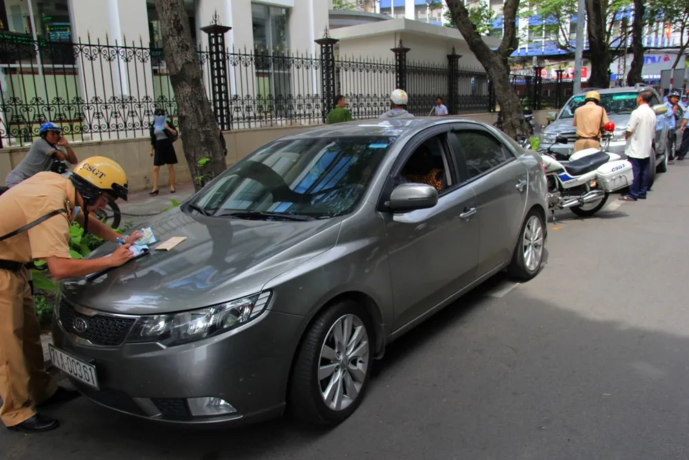 Những ô tô đỗ sai nơi quy định, chiếm lòng đường trên đường Nam Kỳ Khởi Nghĩa bị xử phạt ngày 23-2.