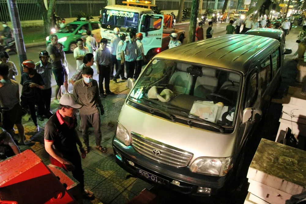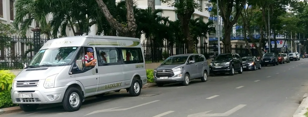 7 ô tô đậu trước Sở Giao dịch chứng khoán TP.HCM trên đường Võ Văn Kiệt bị lực lượng chức năng giữ lại lập biên bản, đối với xe không có chủ đã bị cẩu về trụ sở.