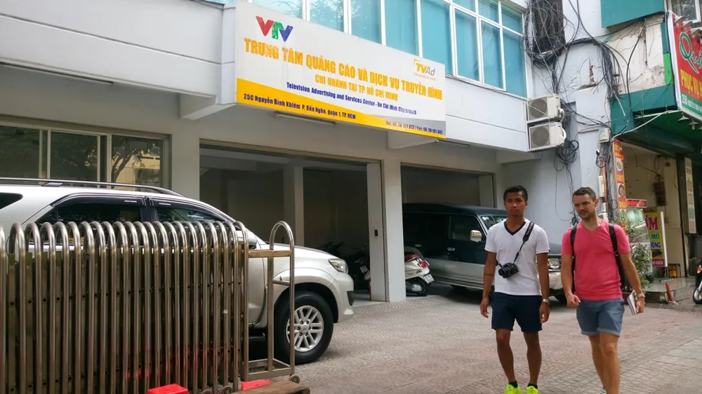 Sáng 23-2, 2 ô tô biển xanh và biển trắng đậu chiếm vỉa hè trước Trung tâm quảng cáo và dịch vụ truyền hình chi nhánh tại TP.HCM (số 25C Nguyễn Bình Khiêm, phường Bến Nghé), đã bị lực lượng kiểm tra lập biên bản, dán niêm phong và cẩu xe về phường.