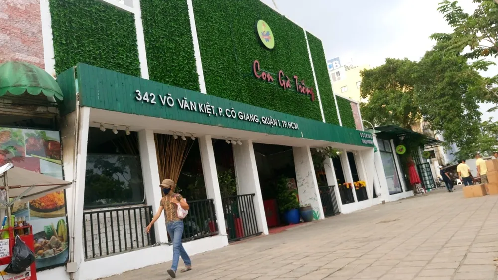 Tối 26-2, nhà hàng Con Gà Trống trên đường Võ Văn Kiệt bị đoàn kiểm tra lập biên bản, tịch thu các chậu cây, cẩu tượng gà phía trước lấn chiếm vỉa hè.
