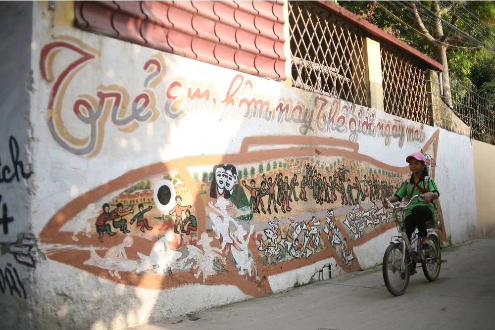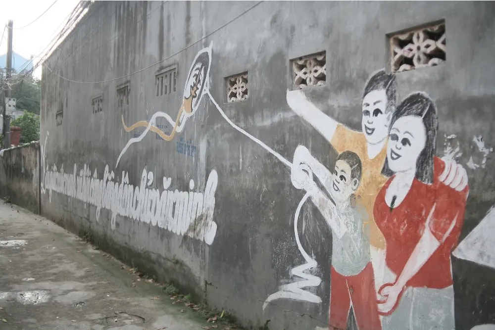 Điều đặc biệt này xuất phát từ chính những bức tranh cổ động được vẽ lên tường của các hộ dân trong thôn. Những bức tranh tưởng chừng chỉ có thể nhìn thấy từ chục năm về trước đều do bàn tay của một cụ ông trong ngõ sáng tác.