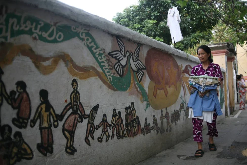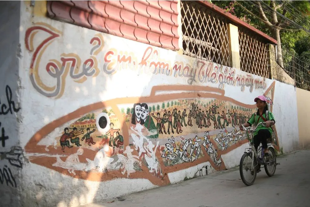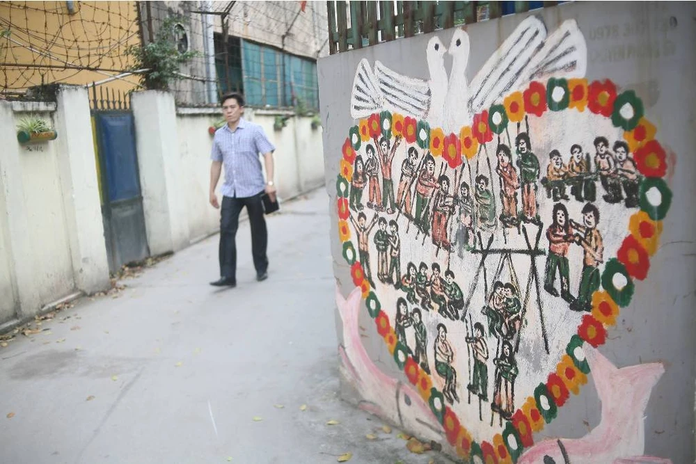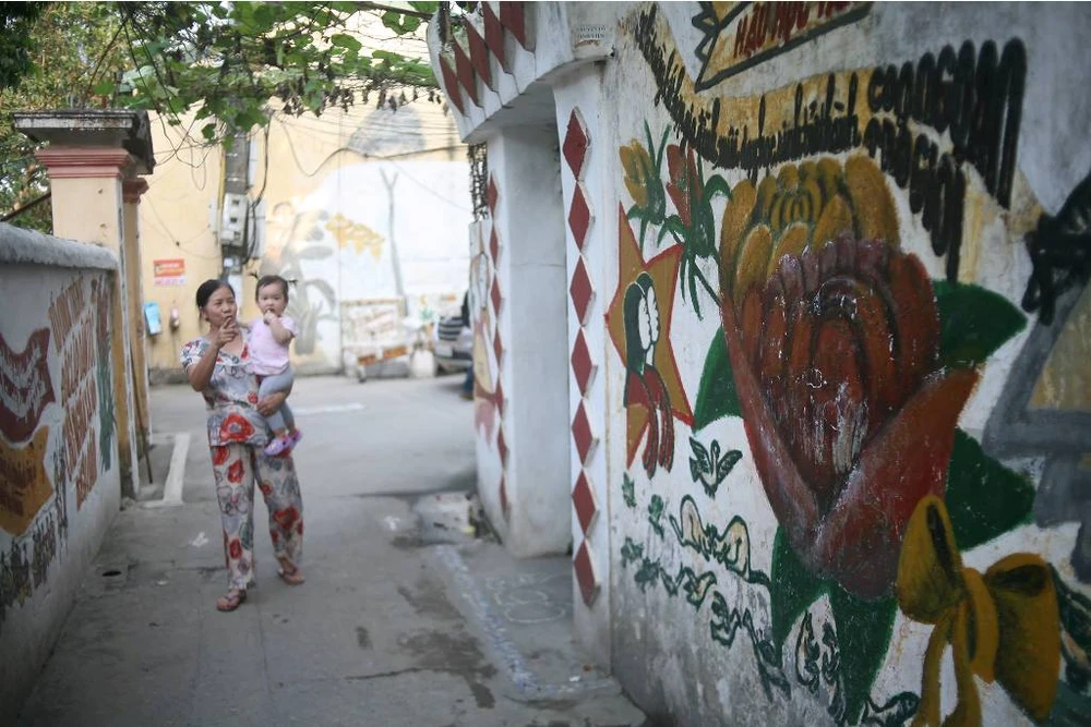 Bước vào con ngõ, người ta sẽ cảm thấy thanh bình và thư thái đến lạ thường. Một cảm giác dường như được trở lại tuổi thơ hàng chục năm trước đây khi những bức tranh cổ động còn thịnh hành khắp các làng quê.