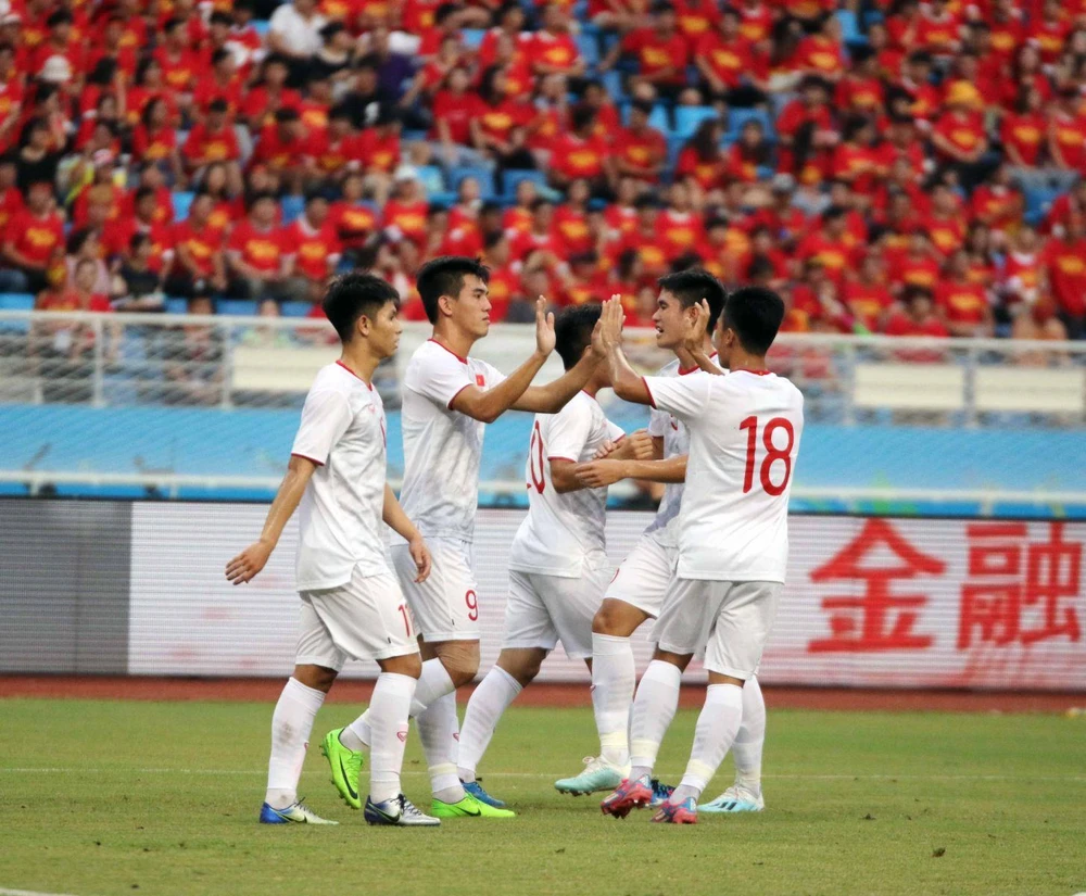 Đội tuyển U-22 Việt Nam đã chơi bóng rất nỗ lực để giành chiến thắng trên đất Trung Quốc. Ảnh: VFF