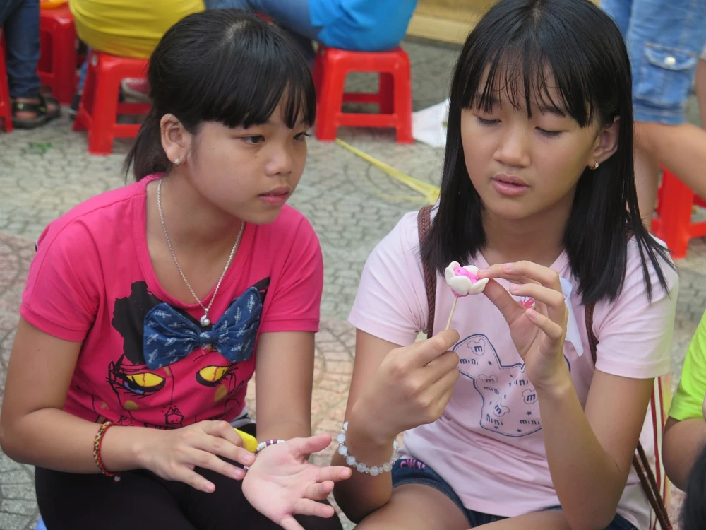 Tò he hình bông hoa được các em khéo léo thực hiện.