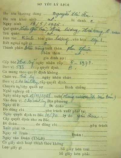 Sơ yếu lý lịch của bà Ân trong chiến tranh được lưu giữ tại trung tâm. Ảnh: NN