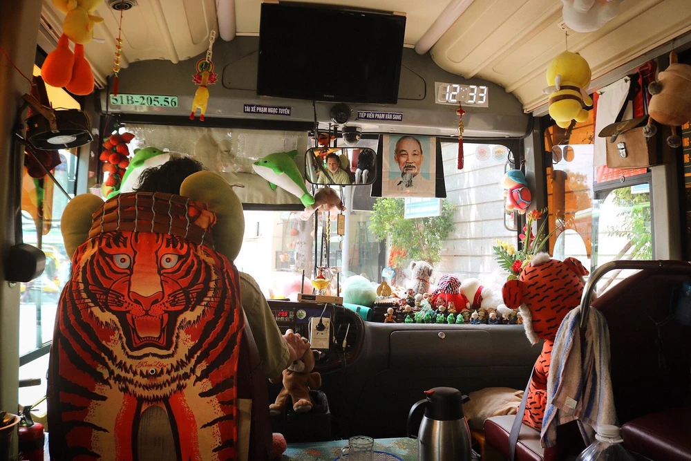 Hơn 5 năm trong nghề lái xe buýt, ông Phạm Ngọc Tuyền (46 tuổi, huyện Hóc Môn) cũng là người bạn hữu thân tình với ông Sang. “Tính ra chúng tôi lăn lộn ngoài đường từ 10-12 tiếng một ngày. Đôi khi lái mệt mỏi, nhìn lên mấy con thú bông cũng vui. Chủ yếu là khách vui thì mình làm, thứ hai nữa là làm mình cũng thấy vui, chạy xe đỡ buồn ngủ. Từ lâu, tôi xem xe này như ngôi nhà thứ 2 của mình".