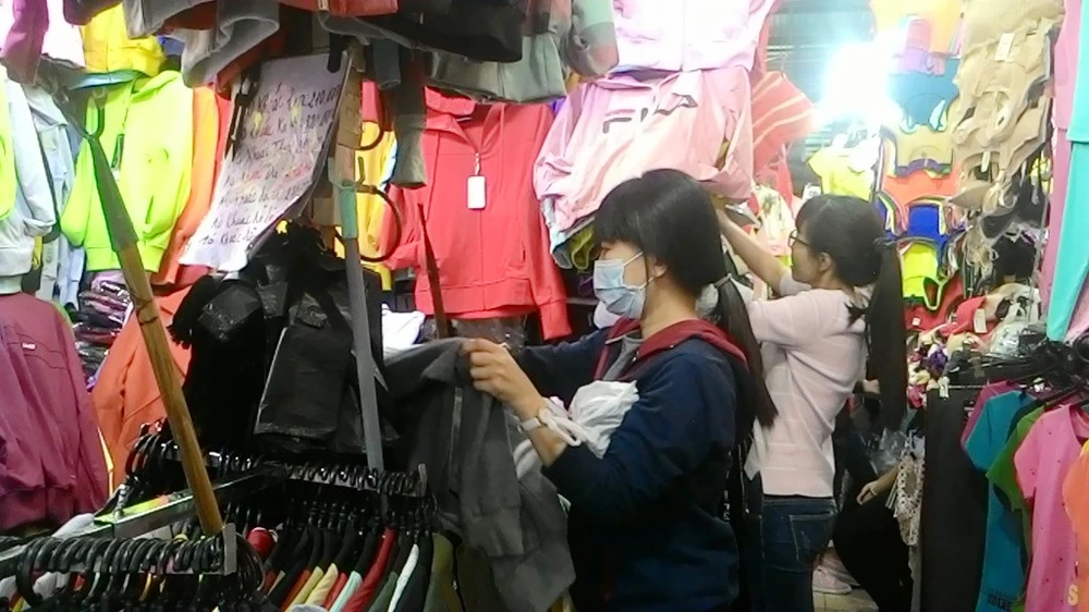 Tan giờ lạnh, chị Nguyễn Ái, làm việc tại Công ty May 32, quận Gò Vấp vội vã ghé chợ Phạm Văn Bạch, quận Gò Vấp mua cho đứa con trai hai tuổi mấy bộ độ dài với một số đôi tất để giữ ấm cơ thể.