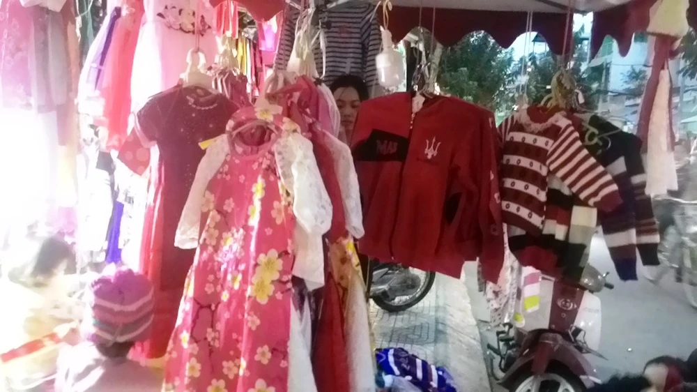 Những chiếc áo khoác, áo len của trẻ em được bày bán đầy các con đường. Ảnh: NGUYỄN QUYÊN