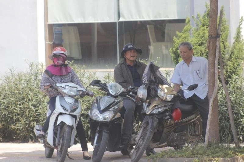 Phụ huynh ngồi đợi bên ngoài điểm thi.