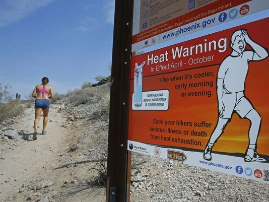 Cảnh báo nắng nóng dành cho người leo núi. Ảnh: AZCentral