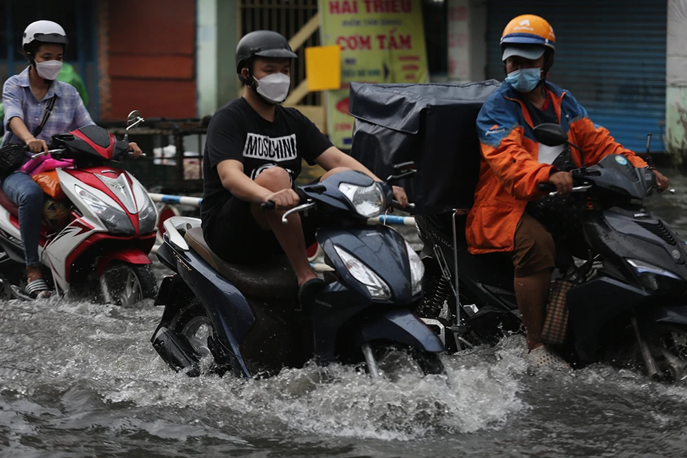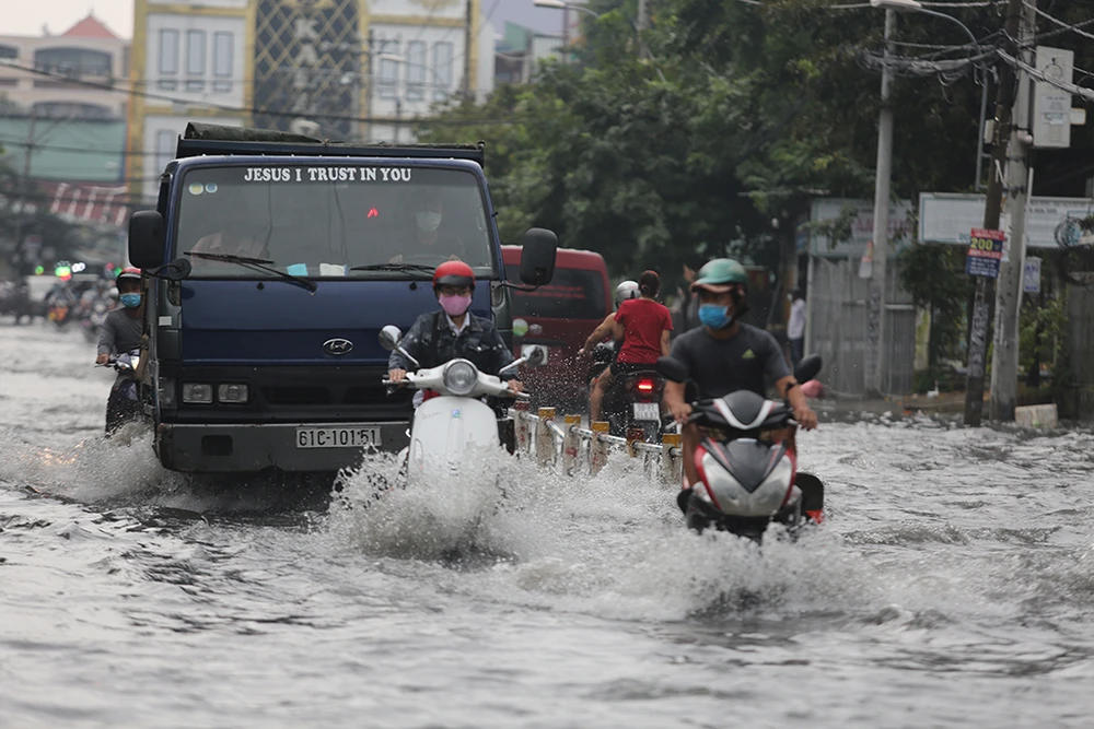 Các tuyến đường bị ngập khá nặng như Lê Văn Thọ, Nguyễn Văn Khối, Phạm Văn Chiêu (quận Gò Vấp), Phan Huy Ích (quận Tân Bình và quận Gò Vấp), Nguyễn Văn Quá, Phan Văn Hớn (Quận 12)…