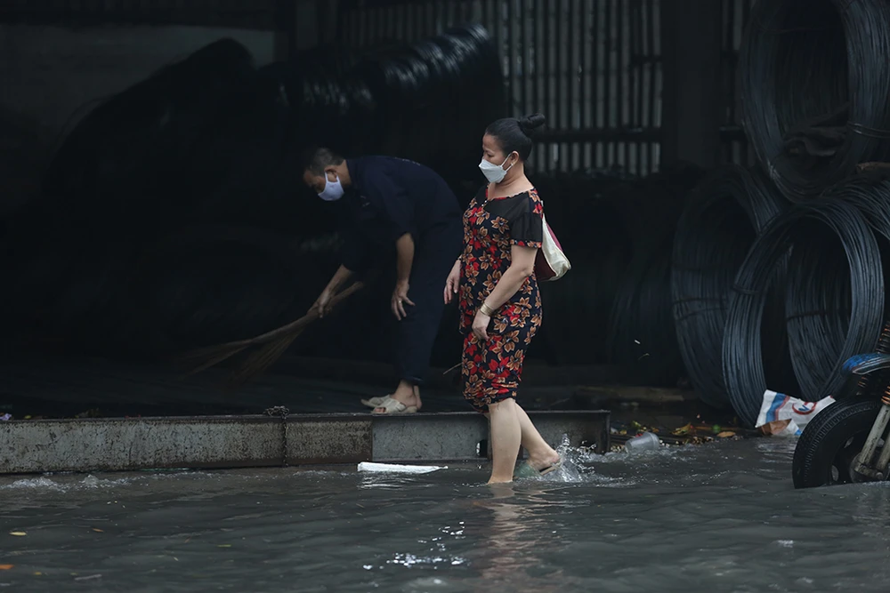 Sau khoảng 30 phút, nước bắt đầu rút dần, giao thông qua các tuyến đường bị ngập dần ổn định.