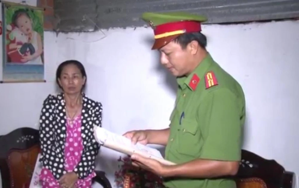 Lực lượng công an đọc lệnh bắt Phạm Thị Mai.