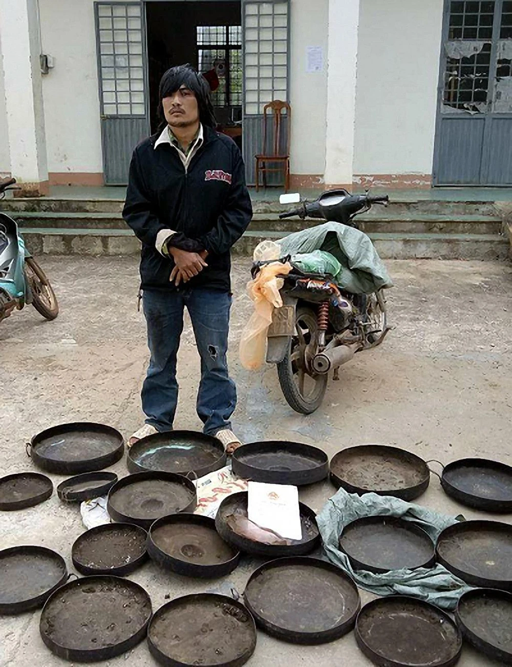Hùng lấy bao tải bỏ 19 chiếc chiêng vào rồi lên xe định tẩu thoát. Tuy nhiên, quần chúng nhân dân quanh vùng thấy khả nghi nên đã giữ Hùng lại, kiểm tra và giao nộp công an.