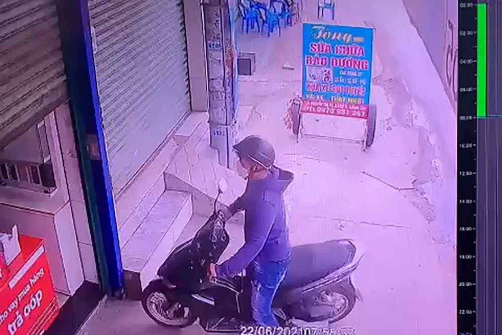 Theo đó, vụ việc xảy ra vào sáng 22-6. Theo anh B., gia đình anh để xe trước cửa tiệm điện thoại và đang cho con ăn bên trong thì bị nam thanh niên đến bẻ khóa trộm xe.