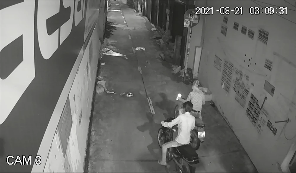 Theo hình ảnh camera an ninh, thời điểm trên, ba người đàn ông chở nhau trên xe máy, chạy đến một con hẻm rồi dừng lại.