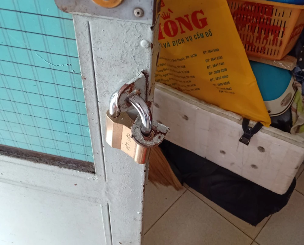 Cửa nhà bị kẻ gian cắt để trộm đồ. Ảnh: NGUYỄN YÊN