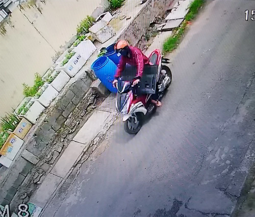 Hình ảnh được camera an ninh ghi lại, thời điểm xảy ra vụ việc, một thanh niên mặc áo khoác, điều khiển xe máy AB chở chiếc tivi đi ra từ nhà nạn nhân.