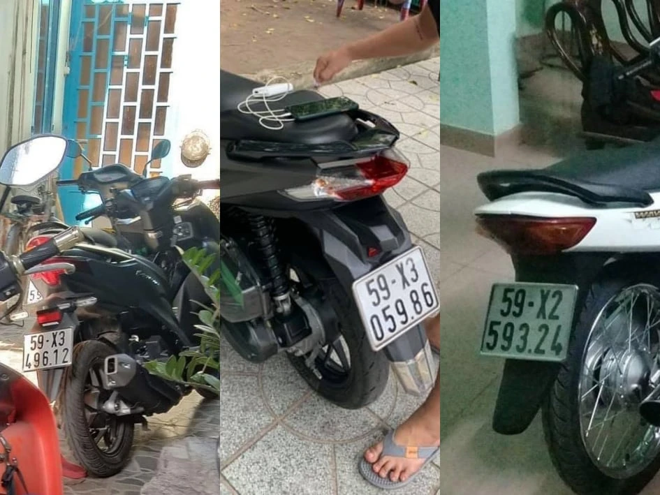 Ba xe máy mang các BKS trên bị trộm đột nhập nhà lấy đi. Ảnh: Người dân cung cấp