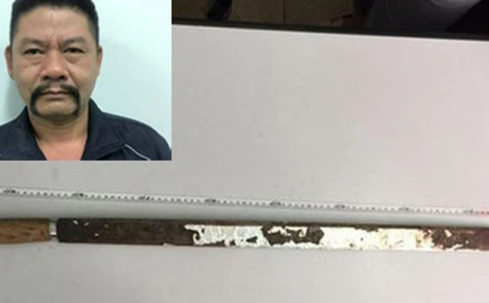 Ông Phương và dụng cụ đã sử dụng để chém Tùng. Ảnh: Tiền Phong