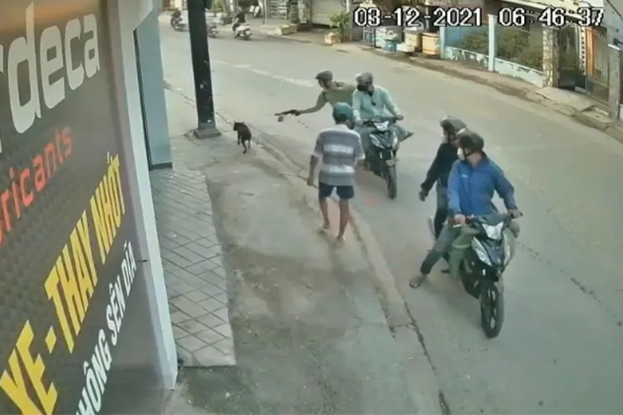 Khi đến khu vực phường Thới An, quận 12, thấy con chó băng qua đường, nhóm này lập tức áp sát dùng cây chích điện gí liên tục làm con mồi bất tỉnh. Vụ việc được camera an ninh ghi hình.