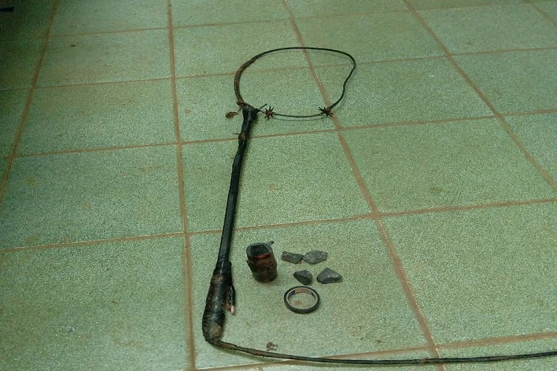 Công an thu giữ ba con chó, một thòng lọng (dùng để bắt chó), nhiều cục đá và một bình xịt hơi cay.