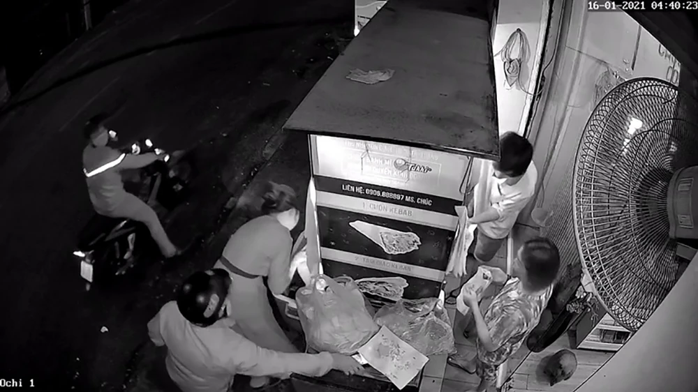 Theo thông tin ban đầu, rạng sáng 16-1, chị C. đang bán bánh mì tại cửa hàng trên đường Huỳnh Văn Bánh thì có hai thanh niên điều khiển xe máy đến mua hàng. Theo camera an ninh, thời điểm xảy ra vụ việc là khoảng 4 giờ 40 phút.