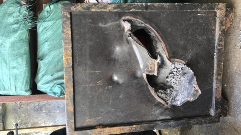 Chiếc két sắt bị phá. Ảnh: THÀNH LONG