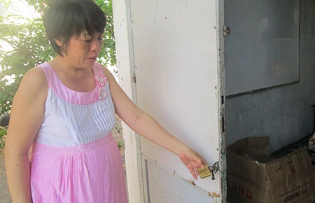 Khóa cửa nhà chị Lí bị kẻ gian cắt rời để vào trộm tài sản. Ảnh: TD