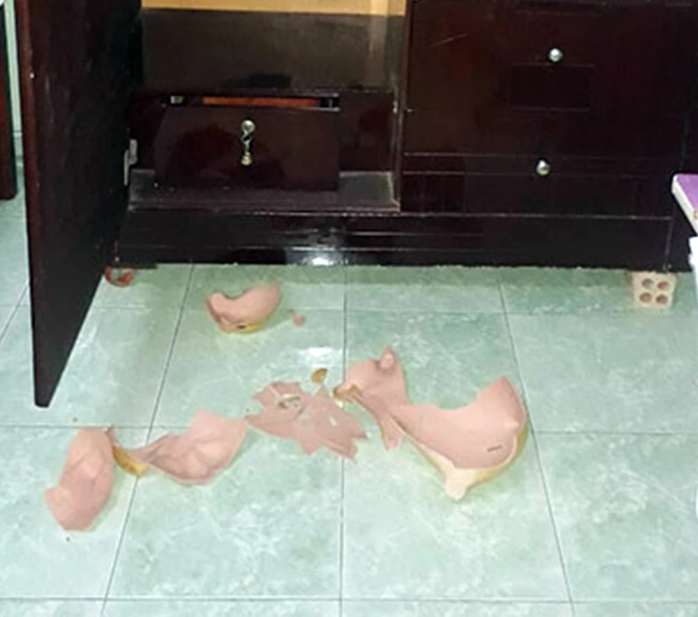Heo đất bị kẻ trộm đập vỡ lấy tiền.