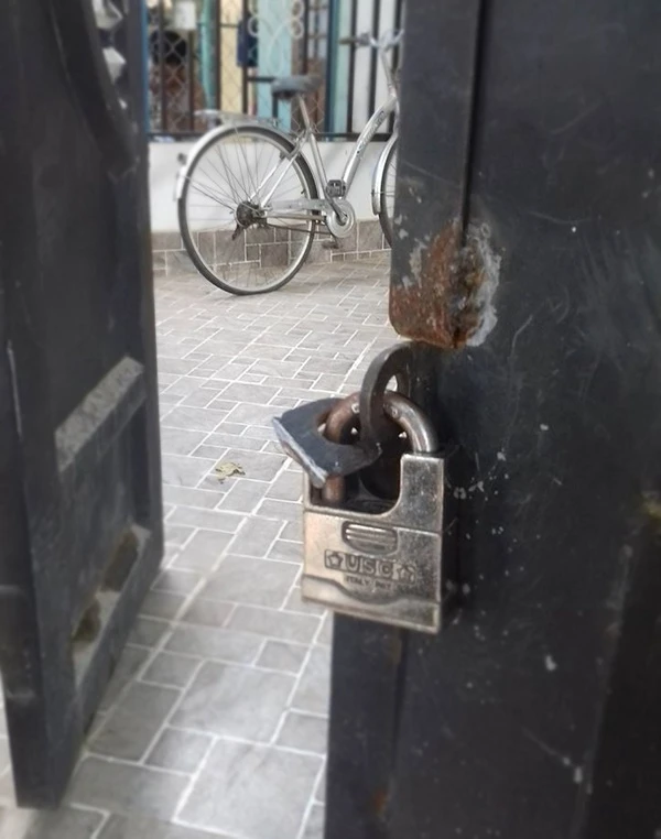Khóa cửa bị cắt.