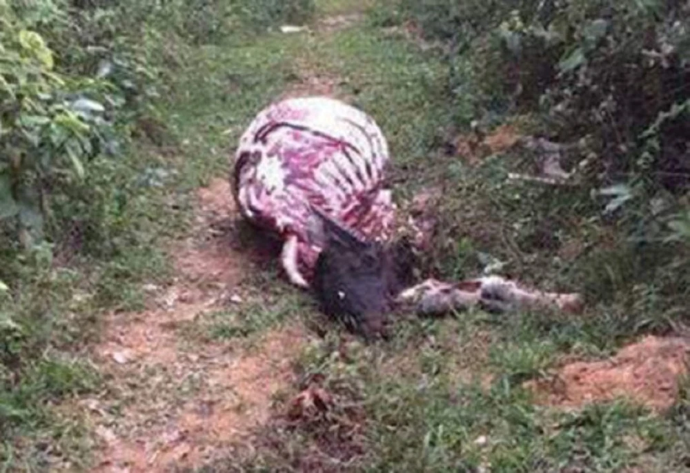 Con trâu bị xẻo hết thịt rồi vứt trên đồi. Ảnh: FB
