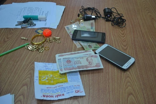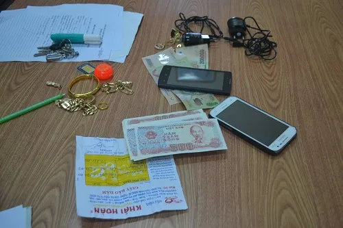 Khám xét nơi ở của Cứ, tang vật thu giữ được gồm 1 xà ben, hơn 1 cây vàng (gồm các loại dây, nhẫn, lắc vàng) cùng một xấp tiền loại 500 đồng (khoảng 100 tờ). Số tiền lẻ này là của chị Mai dùng để cúng nhưng Cứ tiện tay “cuỗm” luôn. Hiện vụ việc đang được điều tra, làm rõ.