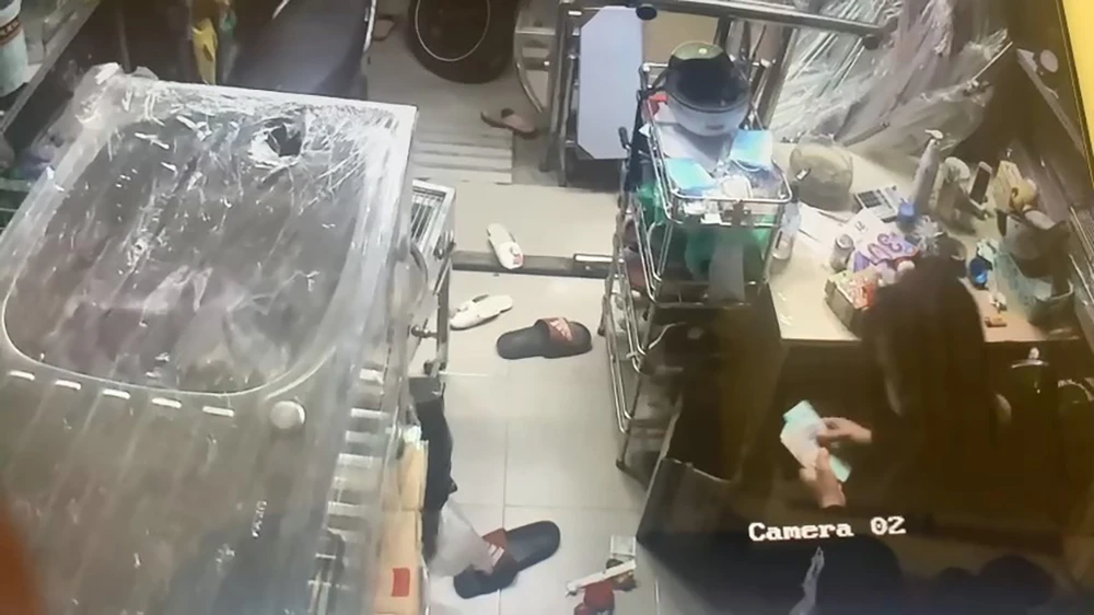 Anh N. cho biết, sau khi xuống tầng trệt, kẻ trộm lấy sạch tiền bán hàng ở trong tủ và đập heo đất của con anh, mở cửa chính đưa tài sản ra ngoài.