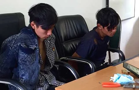 Hai nghi can trộm xe máy bị CSGT bắt giữ. Ảnh: ĐD
