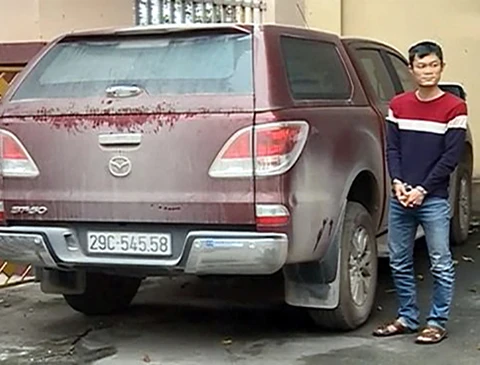 Bị can Toàn tại CQĐT và chiếc xe Toàn tự ý lấy khỏi bãi xe của cơ quan công an. Ảnh: TP