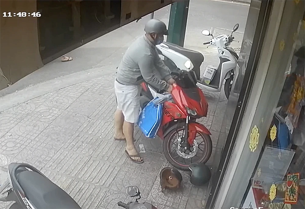Hình ảnh từ camera an ninh ghi lại, sau khi nạn nhân vào bên trong cửa hàng, khoảng 11 giờ 48 một thanh niên dáng người to, mặc áo khoác, đeo khẩu trang tiếp cận chiếc xe. Người này nhẹ nhàng đặt 2 mũ bảo hiểm của nạn nhân xuống đất, bẻ khoá chiếc xe rồi rồ ga chạy đi. Lúc này, 2 nạn nhân và một nhân viên cửa hàng thấy sự việc liền đuổi theo nhưng không kịp.