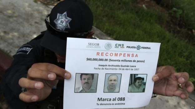 Cảnh sát Mexico đã treo thưởng lớn cho ai cung cấp thông tin giúp bắt giữ Guzman. (Ảnh: EPA)
