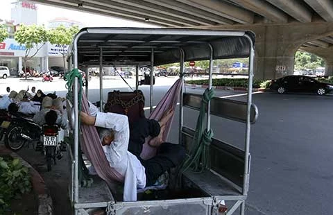 Ông Nguyễn Văn Khải, làm nghề xe ôm ở phố Lê Văn Lương, cho biết ông luôn mặc áo dài tay, đeo khẩu trang, găng tay để chống lại cái nóng như thiêu như đốt. “Chạy xe mà mồ hôi tuôn như tắm. Hơi nóng từ mặt đường bốc lên hầm hập rát cả mặt. Vì mưu sinh tôi phải ra đây ngồi, kiếm được khách nào thì hay khách đó. Do trời nắng, lượng khách đi xe ôm giảm hẳn vì khách chọn taxi hoặc xe buýt” - ông Khải than.