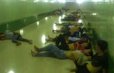 12 giờ trưa 29-5, tại một hầm đường bộ trên đường Nguyễn Xiển, có hàng chục công nhân, người lao động và người dân chui xuống đây nằm ngủ xếp thành hàng dài. Anh Đông, công nhân sửa chữa ô tô, cho biết xuống đây vừa mát, vừa yên tĩnh. “Ở dưới này cũng mát nhưng thỉnh thoảng bị đuổi vì cản trở người đi lại. Thì cũng đành phải vậy thôi!” - anh Đông nói.