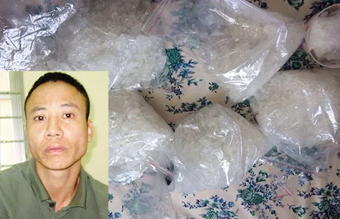 Vũ Ngọc Thắng cùng tang vật 7 kg ma túy đá.