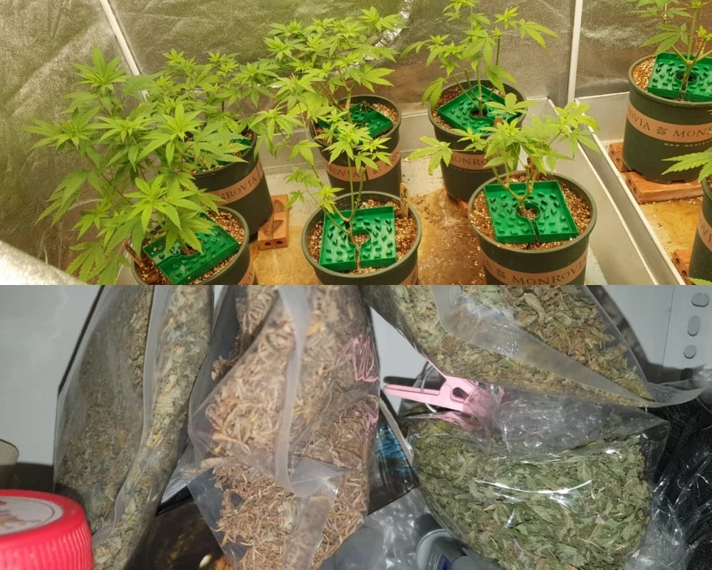 Tại đây, lực lượng Công an phát hiện bốn lều trồng cần sa với số lượng 140 cây và 5 bịch nylon cần sa khô. Đồng thời công an thu giữ gần 8090g cần sa và nhiều dụng cụ, thiết bị trồng cần sa.